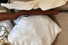 При осмотре квартиры были обнаружены и изъяты пневматическая винтовка модели GAMO CF-20, а также 205 пуль Pro Hunter калибра 4,5 миллиметра в металлической коробке.